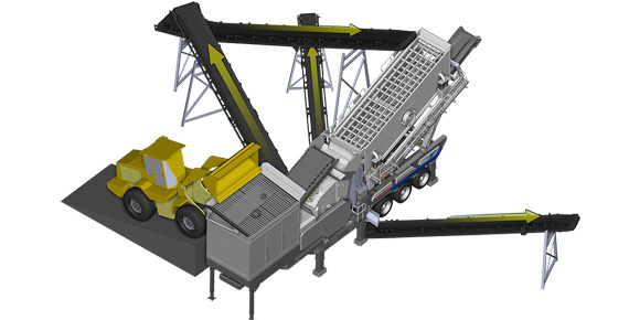 實際生產(chǎn)作業(yè)中,現(xiàn)場存在大量無需粗破的中原礦石土層,如果不加以區(qū)分,不僅增加粗破的處理量,還會導致更大功耗;而獨立作業(yè)組合移動站無需增加設備和成本,即可對這些物料進行預篩分,降低粗破處理量、增大產(chǎn)能。