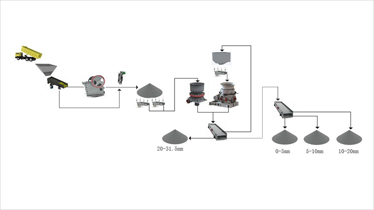 該生產(chǎn)線配置信息:加工物料為銅礦石(800mm以下 );日運(yùn)轉(zhuǎn)16小時(shí);成品粒度為0-15mm;使用設(shè)備有PEW1100顎式破碎機(jī)、HST315圓錐破碎機(jī)等。