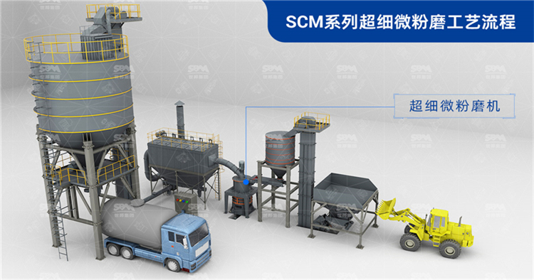 該磨粉生產(chǎn)線配置信息:加工物料為方解石、石灰石;成品粒度為1600-1250目超細(xì)粉;使用設(shè)備有SCM1000超細(xì)磨粉機(jī)等。