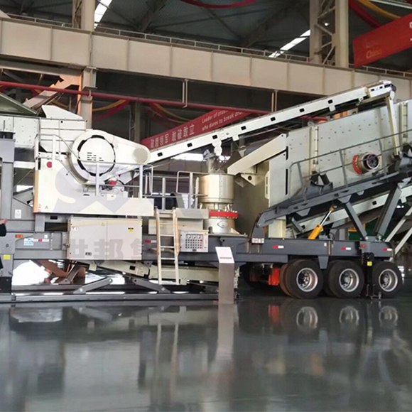 移動生產(chǎn)線通常以外接電力電源為動力來源,原料由振動給料機(jī)均勻地送到顎式破碎機(jī)或者反擊式破碎機(jī)進(jìn)行粗碎作業(yè),粗碎后的物料由皮帶輸送機(jī)送入到圓錐式破碎機(jī)或者反擊式破碎機(jī)進(jìn)行進(jìn)一步破碎,細(xì)碎后的物料被輸送到振動篩進(jìn)行篩分,達(dá)到成品粒度要求的物料被由成品輸送帶輸出即為成品;未達(dá)到成品粒度要求的物料從振動篩返回沖擊式破碎機(jī)或者圓錐式破碎機(jī)重新加工,形成閉路多次循環(huán)。成品粒度可按用戶的需求進(jìn)行組合和分級。