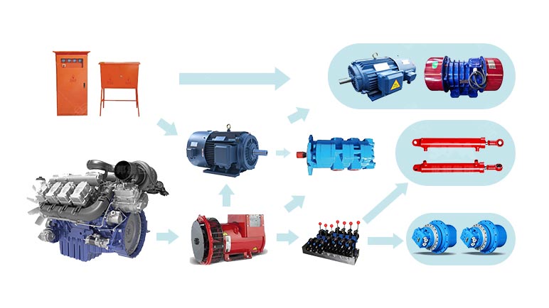 支持全液壓驅(qū)動(dòng)、純電驅(qū)動(dòng)、雙動(dòng)力驅(qū)動(dòng)及直聯(lián)+液壓驅(qū)動(dòng)多種動(dòng)力模式。其中,雙動(dòng)力系統(tǒng)可智能切換油電,無(wú)電地區(qū)柴油作業(yè),有電地區(qū)電力節(jié)能,顯著降低能耗開(kāi)支。