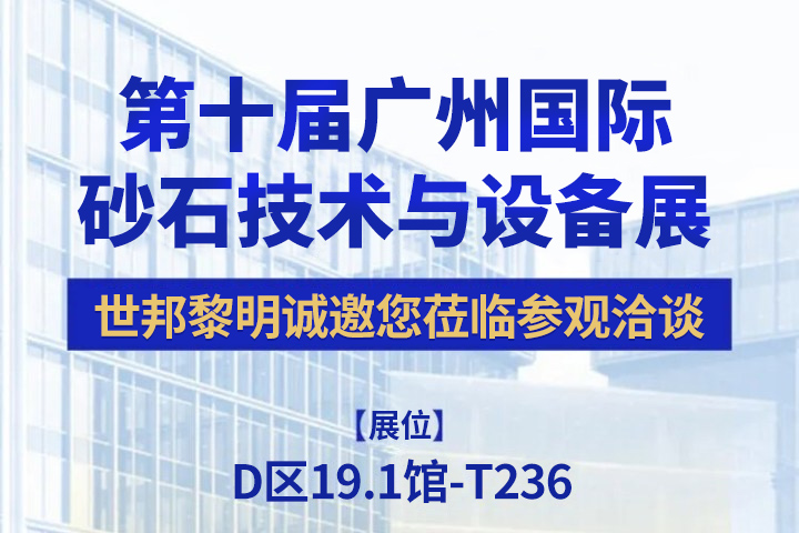 世邦黎明誠邀您蒞臨第十屆廣州國際砂石技術(shù)與設(shè)備展,展位:D區(qū)19.1館-T236,時(shí)間2024.9.23-25,地址:廣州·中國進(jìn)出口商品交易會展館