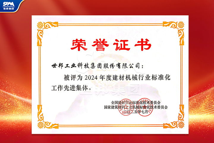 近日,經(jīng)全國建材裝備標(biāo)準(zhǔn)化技術(shù)委員會及國家建筑材料工業(yè)機(jī)械標(biāo)準(zhǔn)化技術(shù)委員會嚴(yán)格評審,世邦集團(tuán)憑借在行業(yè)標(biāo)準(zhǔn)體系建設(shè)中的突出貢獻(xiàn),被授予“2024年度建材機(jī)械行業(yè)標(biāo)準(zhǔn)