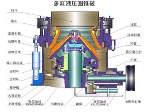 多缸液壓圓錐破碎機(jī)的主軸粗短,其直徑可以設(shè)計(jì)的很大,直接立于機(jī)架上(而非偏心套里),由機(jī)架直接支撐,提供的承載力較高,偏心套直接帶動(dòng)動(dòng)錐