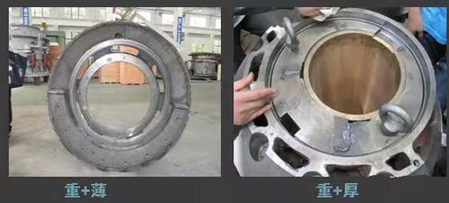 邊加上配重塊,來(lái)和整個(gè)動(dòng)錐體平衡。不僅如此,當(dāng)主軸和動(dòng)錐向緊口邊運(yùn)動(dòng)時(shí),寬口邊會(huì)積累很多的物料,會(huì)對(duì)動(dòng)錐體向?qū)捒谶呥\(yùn)動(dòng)形成阻力,加上