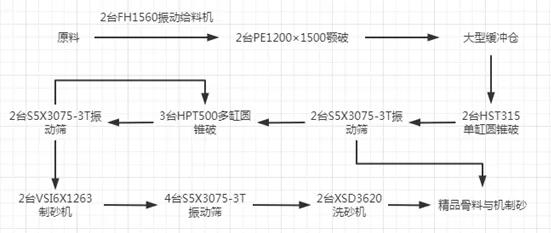 下面我們以多個廠家設(shè)計并成功運行的案例為例,為大家介紹幾種時產(chǎn)500t左右的碎石制砂生產(chǎn)線配置。