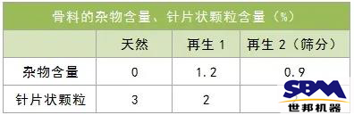 再生骨料與天然骨料針片狀顆粒含量基本相當,雜物含量等有著明顯區(qū)別: