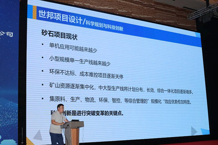 此次會議還邀請了業(yè)內(nèi)知名專家學(xué)者、企業(yè)精英作專題報告。20日下午,作為特邀嘉賓,世邦集團(tuán)技術(shù)經(jīng)理張培林先生在會上作了《目前砂石行業(yè)形勢下利用科技創(chuàng)新和科學(xué)規(guī)劃的技術(shù)應(yīng)用分享》主題報告。