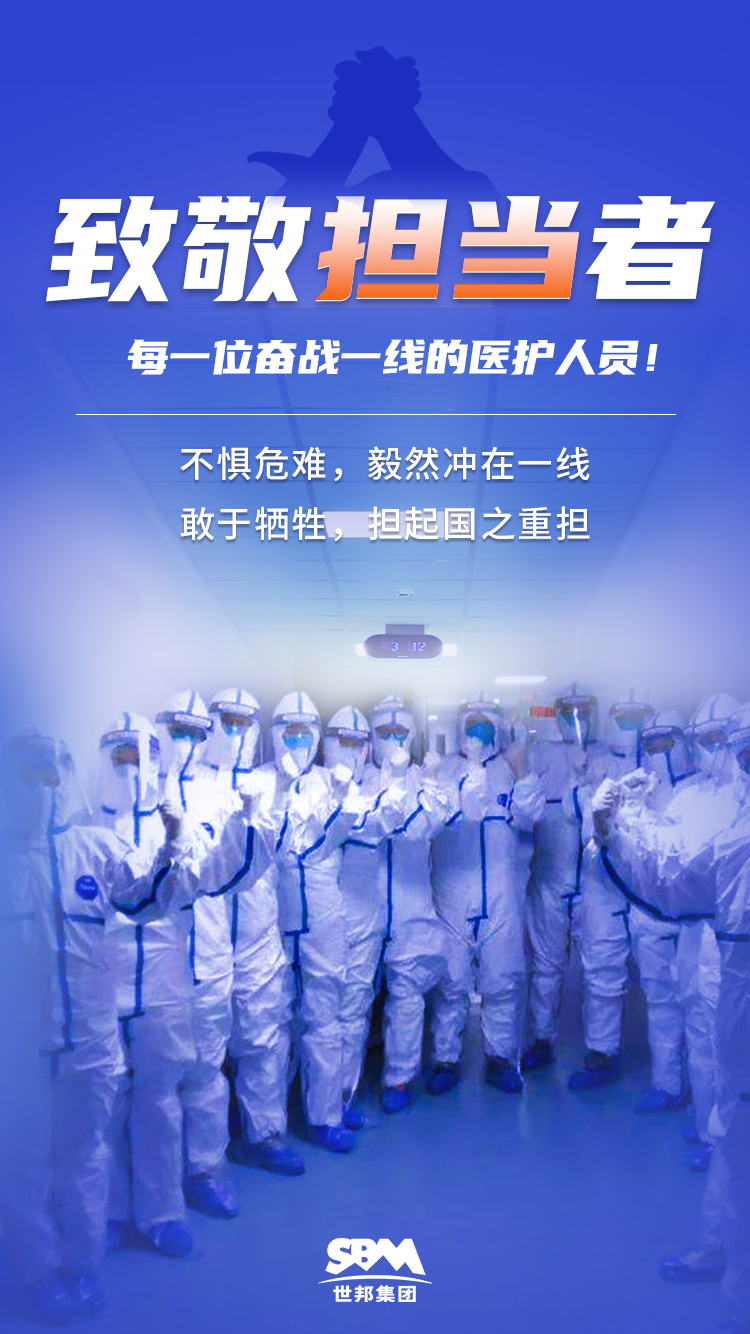 疫情當前,世邦集團定向捐助馳援武漢醫(yī)療團隊,充分表達了對在國家危難時刻沖在前列線的醫(yī)護工作者的崇高敬意和誠摯慰問。世邦集團堅信,醫(yī)護工作者的犧牲與擔當是一種崇高的精神!這種精神為國家、社會、人類所需要!我們需要尊重、維護、傳遞這種充滿正能量的價值觀!