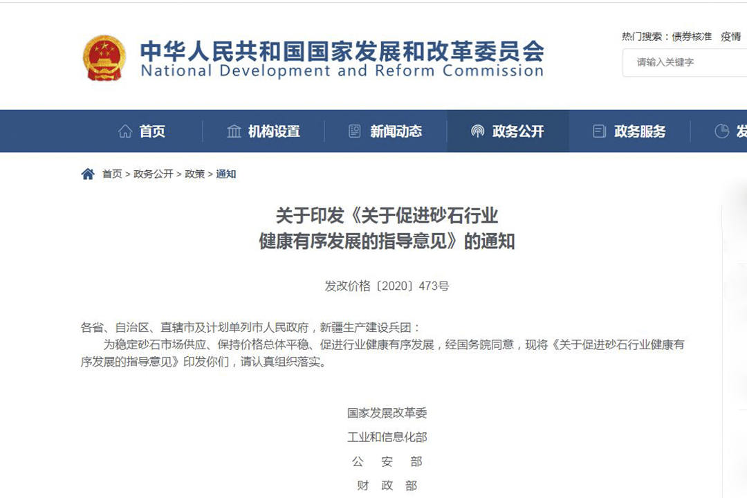 同一時(shí)間段,為穩(wěn)定砂石市場供應(yīng)、保持價(jià)格總體平穩(wěn)、促進(jìn)行業(yè)健康有序發(fā)展,國家發(fā)改委等十五部門和單位聯(lián)合印發(fā)《關(guān)于促進(jìn)砂石行業(yè)健康有序發(fā)展的指導(dǎo)意見》,為砂石行業(yè)健康有序發(fā)展做出明確指導(dǎo)。