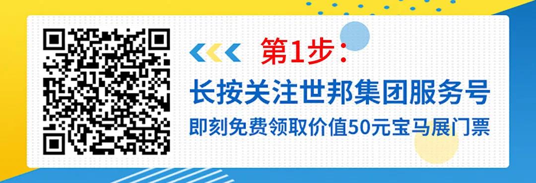 備注:如您已關注世邦集團服務號,可在聊天框直接輸入關鍵詞【寶馬展門票】,登記后,同樣可以免費獲取價值50元寶馬展門票~快去試試吧~