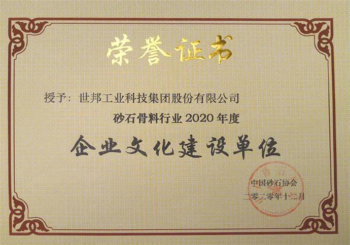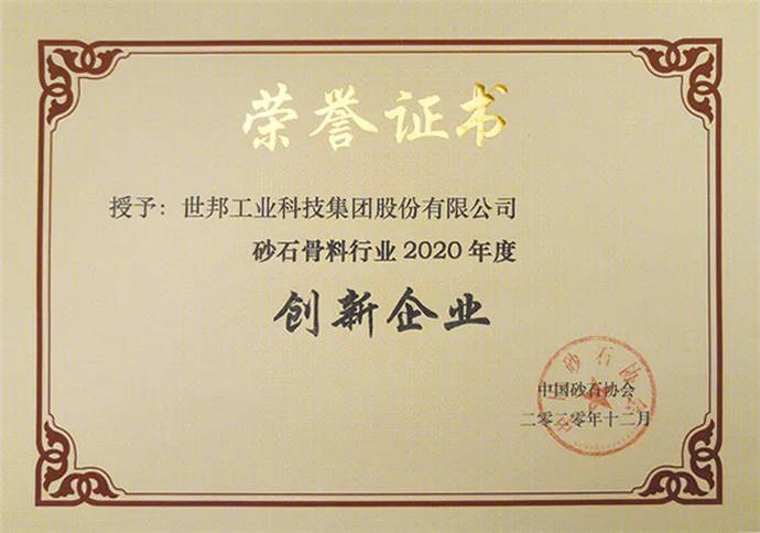 12月14日,中國(guó)砂石協(xié)會(huì)年會(huì)公布2020年度中國(guó)砂石行業(yè)企業(yè)信用等級(jí)評(píng)價(jià)結(jié)果,世邦工業(yè)科技集團(tuán)股份有限公司被評(píng)為AAA級(jí)信用企業(yè)。