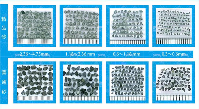 高頻“石打石”腔型,獲得多立方體物料,少針片狀,減磨損,增強(qiáng)度,易泵送。與普通砂相比,VU砂粒型更圓潤,表面棱角、毛刺大程度減少。