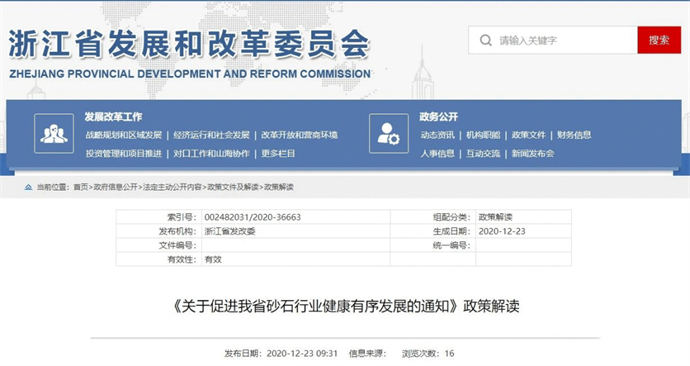 依托獨特地理資源優(yōu)勢,浙江砂石行業(yè)發(fā)展日新月異,為規(guī)范發(fā)展,浙江省發(fā)展改革委等15單位聯(lián)合發(fā)文《關(guān)于促進(jìn)我省砂石行業(yè)健康有序發(fā)展的通知》。