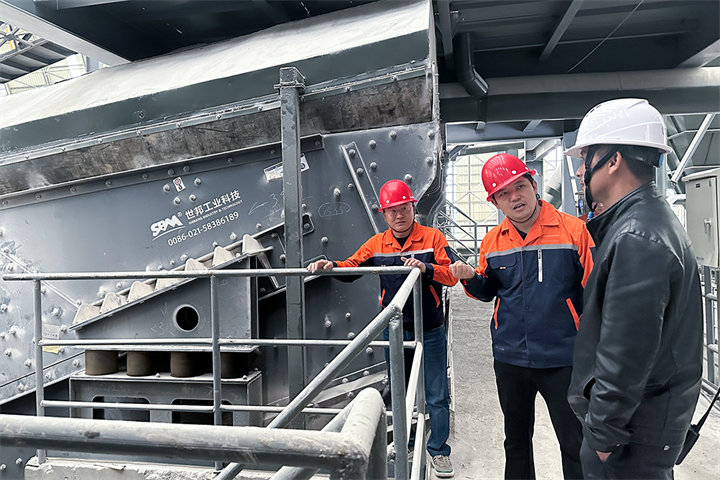 抵達(dá)客戶現(xiàn)場(chǎng)時(shí)產(chǎn)線正在生產(chǎn)狀態(tài),回訪團(tuán)首先對(duì)生產(chǎn)線進(jìn)行了全面性的評(píng)估,整體狀態(tài)較為平穩(wěn)??蛻糁赋稣駝?dòng)篩篩網(wǎng)有時(shí)會(huì)出現(xiàn)堵塞問(wèn)題,影響下料。世邦售后人員立刻做出響應(yīng),對(duì)振動(dòng)篩進(jìn)行了全面檢查后發(fā)現(xiàn)是長(zhǎng)期生產(chǎn)導(dǎo)致的粘土過(guò)多,于是為客戶進(jìn)行了篩網(wǎng)清理,并叮囑客戶針對(duì)篩網(wǎng)要定期清理以免物料堆積影響生產(chǎn)。交談中客戶表示,世邦設(shè)備使用至今非常滿意,遇到的一些問(wèn)題反饋后,也會(huì)派相關(guān)人員及時(shí)前來(lái)解決,是值得信任的設(shè)備廠家。