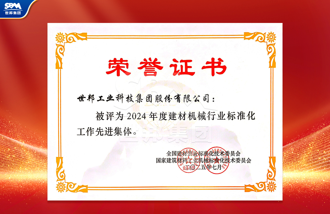 近日,經(jīng)全國建材裝備標(biāo)準(zhǔn)化技術(shù)委員會及國家建筑材料工業(yè)機(jī)械標(biāo)準(zhǔn)化技術(shù)委員會嚴(yán)格評審,世邦集團(tuán)憑借在行業(yè)標(biāo)準(zhǔn)體系建設(shè)中的突出貢獻(xiàn),被授予“2024年度建材機(jī)械行業(yè)標(biāo)準(zhǔn)化工作先進(jìn)集體”稱號。這一榮譽(yù)不僅是對世邦集團(tuán)長期致力于行業(yè)標(biāo)準(zhǔn)化建設(shè)的高度認(rèn)可,更彰顯了企業(yè)在推動行業(yè)規(guī)范化發(fā)展中的示范作用。