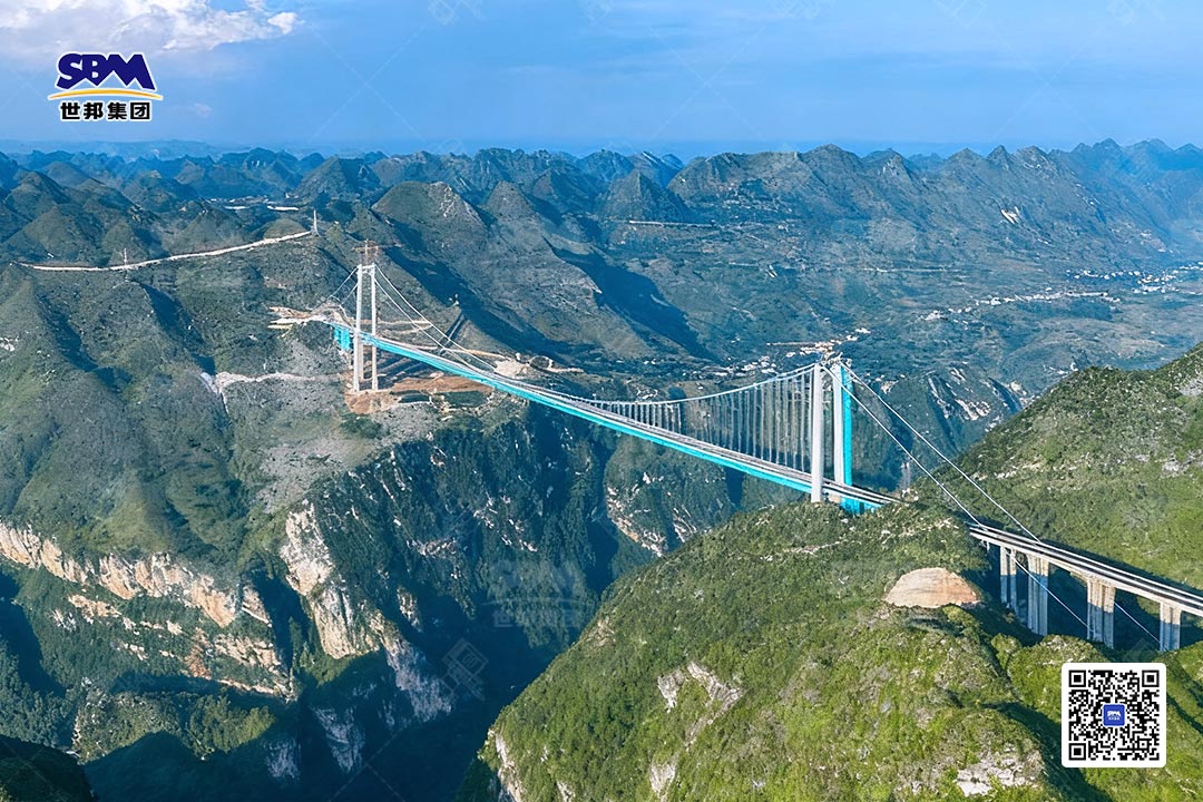 在這項(xiàng)令人矚目的工程背后,凝聚著無(wú)數(shù)建設(shè)者與專(zhuān)業(yè)裝備的協(xié)同努力。作為承建方,貴州橋梁建設(shè)集團(tuán)(隸屬貴州交建集團(tuán))以其雄厚的技術(shù)實(shí)力和豐富的橋梁建設(shè)經(jīng)驗(yàn),承擔(dān)了這一超級(jí)工程的建設(shè)重任;而世邦集團(tuán)作為破碎制砂裝備領(lǐng)域的深耕者,有幸為這條“云端天路”的基礎(chǔ)建設(shè)——六安高速公路,提供了可靠的砂石骨料生產(chǎn)設(shè)備與技術(shù)保障。