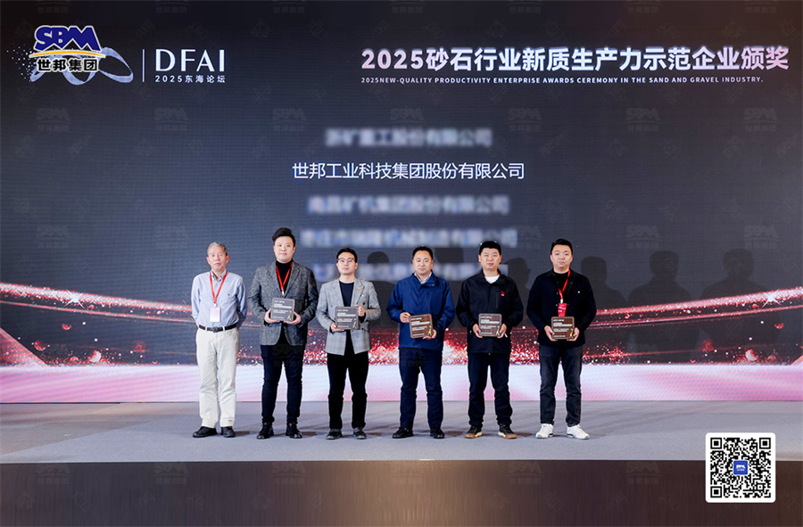 在這場思想碰撞、技術(shù)交融的行業(yè)盛宴中,世邦集團(tuán)以贊助單位的身份深度參與,并在裝備展示區(qū)設(shè)立展位,以創(chuàng)新技術(shù)實(shí)力與綜合服務(wù)能力成為全場焦點(diǎn),更在同期舉辦的 “2025年砂石行業(yè)新質(zhì)生產(chǎn)力示范企業(yè)表彰大會(huì)” 上,喜獲獎(jiǎng)項(xiàng)!