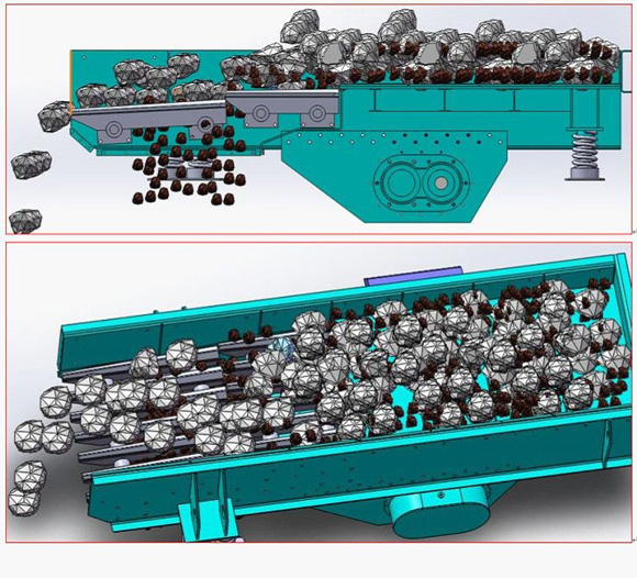 設(shè)備采用高振動(dòng)頻率的雙偏心軸激振器,性能穩(wěn)定,激振力強(qiáng);配合二段階梯式篦條,使給料更快更順暢,大大提高了設(shè)備給料能力。