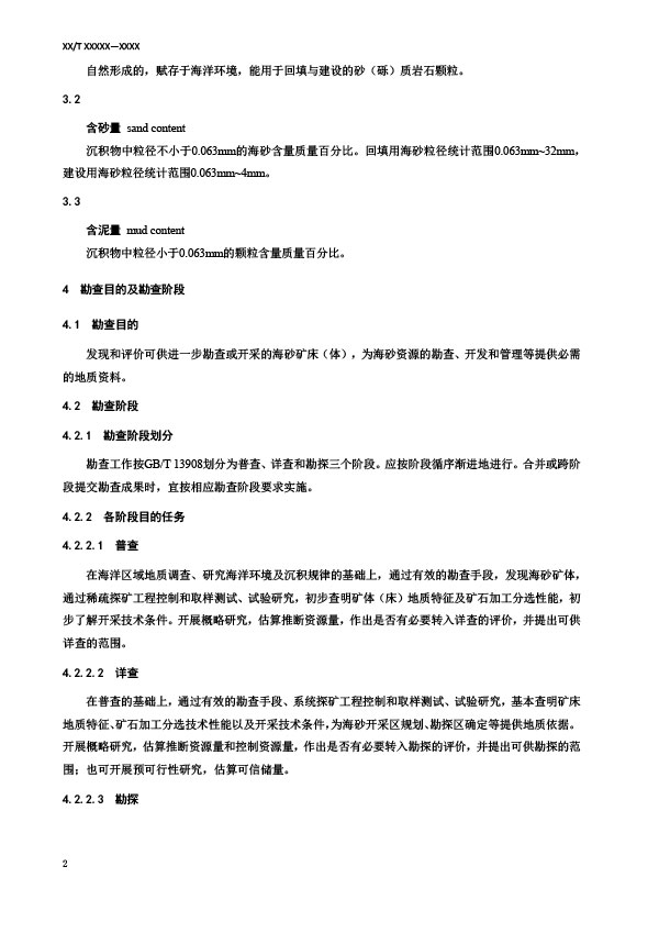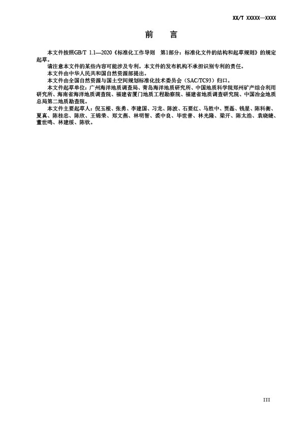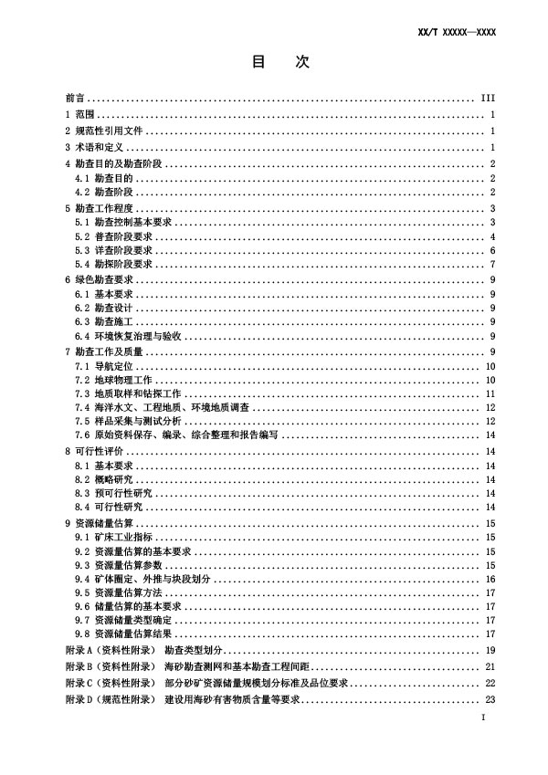 本文件規(guī)定了海砂礦產(chǎn)地質(zhì)勘査目的及勘査階段、勘査工作程度、綠色勘査要求、勘查工作及其質(zhì)可行性評(píng)價(jià)、資源儲(chǔ)量估算等要求。本文件適用于海砂礦產(chǎn)地質(zhì)勘查工作及成果評(píng)價(jià)等。