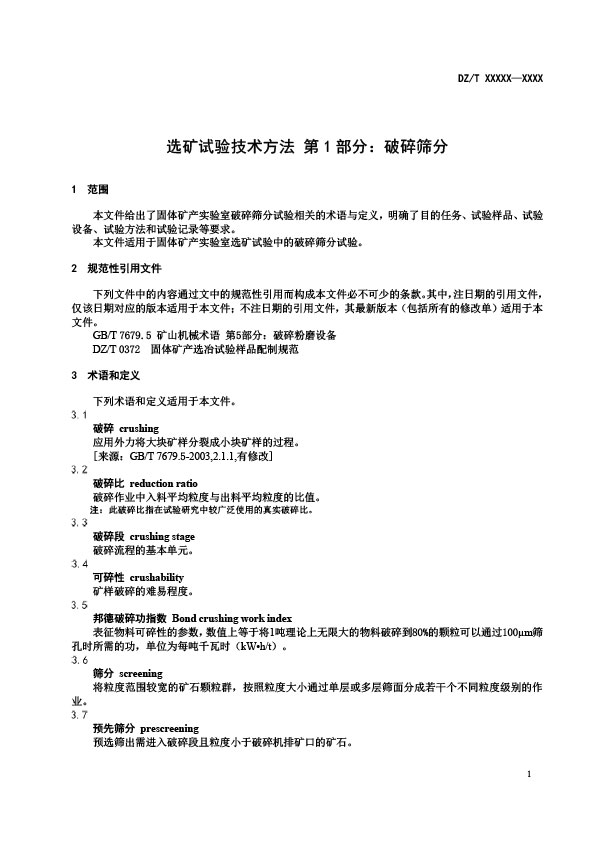 本文件給出了固體礦產(chǎn)實(shí)驗(yàn)室破碎篩分試驗(yàn)相關(guān)的術(shù)語與定義,明確了目的任務(wù)、試驗(yàn)樣品、試驗(yàn)設(shè)備、試驗(yàn)方法和試驗(yàn)記錄等要求。本文件適用于固體礦產(chǎn)實(shí)驗(yàn)室選礦試驗(yàn)中的破碎分試驗(yàn)。