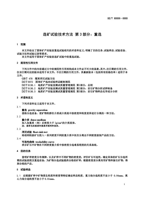 世邦集團(tuán)手機(jī)站本文件給出了固體礦產(chǎn)實(shí)驗(yàn)室重選試驗(yàn)相關(guān)的術(shù)語和定義,明確了目的任務(wù)、試驗(yàn)樣品、試驗(yàn)設(shè)備,試驗(yàn)方法和試驗(yàn)記錄等要求。本文件適用于固體礦產(chǎn)實(shí)驗(yàn)室選礦試驗(yàn)中的重選試驗(yàn)。
