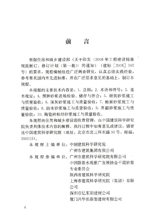 本規(guī)程規(guī)定了預(yù)拌砂漿的定義,分類、標(biāo)記、技術(shù)要求,試驗(yàn)方法、檢驗(yàn)規(guī)則及訂貨與交貨。本規(guī)程適用于預(yù)拌砂漿的生產(chǎn)質(zhì)量控制,采用預(yù)拌砂漿的一般工業(yè)與民用建筑物的砌筑、抹灰,地面(屋面)工程和裝飾裝修工程的施工質(zhì)量控制和驗(yàn)收。