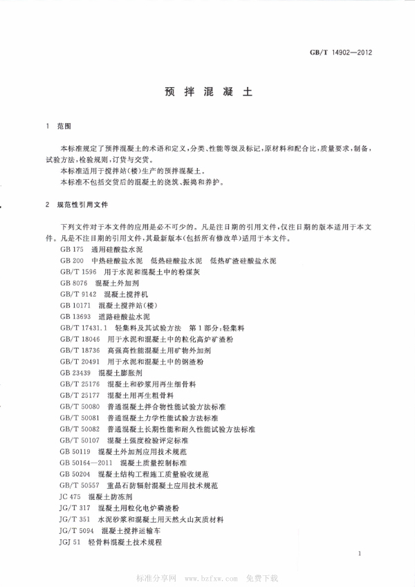 預拌混凝土是混凝土生產(chǎn)由粗放型生產(chǎn)向集約化大生產(chǎn)的轉(zhuǎn)變,實現(xiàn)了混凝土生產(chǎn)的專業(yè)化、商品化和社會化。本標準適用于攪拌站(樓)生產(chǎn)的預拌混凝土,不包括交貨后的混凝土的澆筑、振搗和養(yǎng)護。