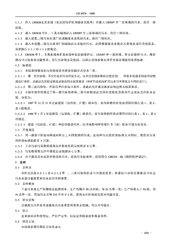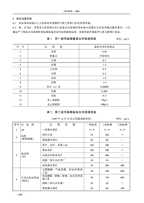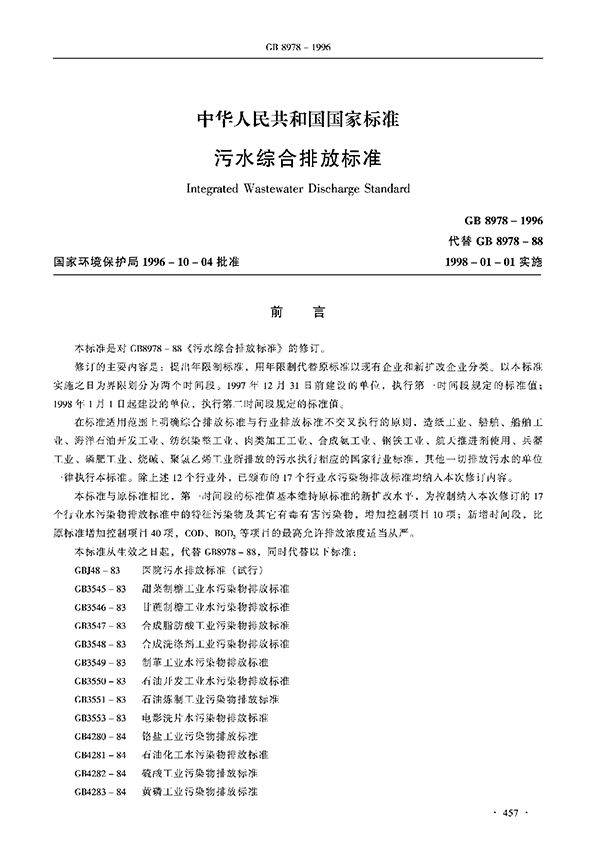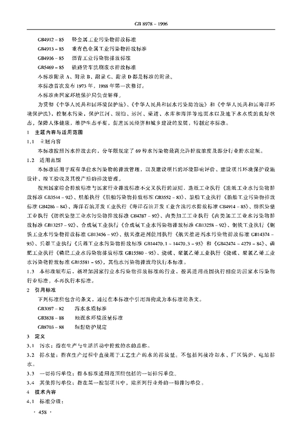 本標準按照污水排放去向,分年限規(guī)定了69種水污染物理想允許排放濃度及部分行業(yè)理想允許排水量。本標準適用于現(xiàn)有單位水污染物的排放管理,以及建設項目的環(huán)境影響評價、建設項目環(huán)境保護設施設計、竣工驗收及其投產(chǎn)后的排放管理。